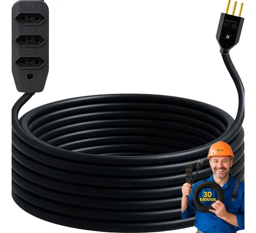 Extensão 30 metros cabo PP reforçada obra profissional 10/20a preto