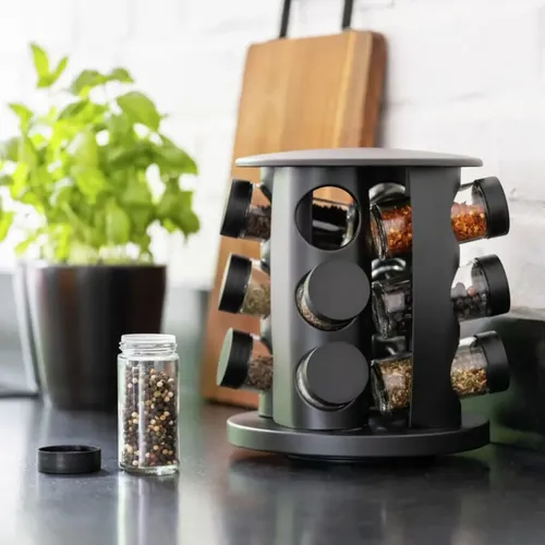 Belakaza Porta Condimentos Vidro E Tampa Giratório Com 9 Potes Preto