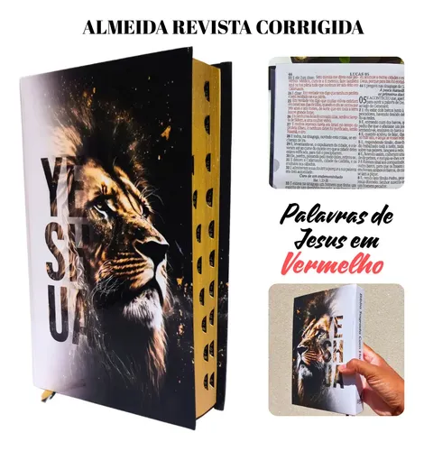 Bíblia Sagrada Masculina Evangélica Luxo Letra Média Harpa Cristã Capa Dura Leão Índice Palavras De Jesus Em Negrito João Ferreira Almeida Revista Corrigida Branca Folha Ecológica Jovem Promessas Fé