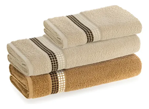 Kit 3 toalhas de banho Dimer, cores: grão e avelã