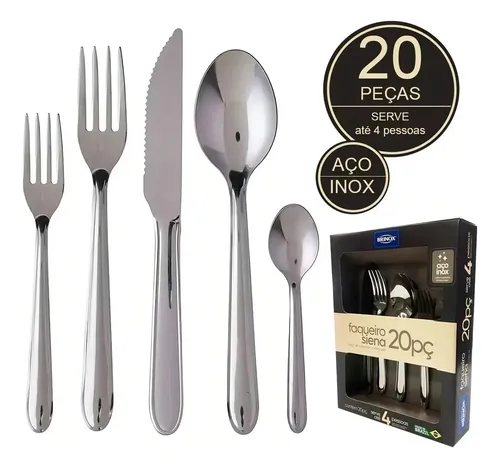 Faqueiro De Aço Inox Siena 20 Peças Brinox 5109/455 Cor Prateado