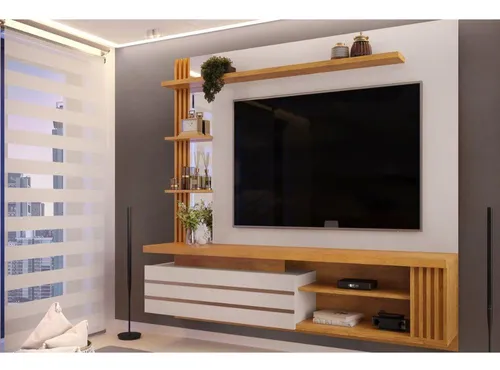 Móvel para TV até 55 polegadas, Marinho, com 1 porta e torre ripada (160x15)